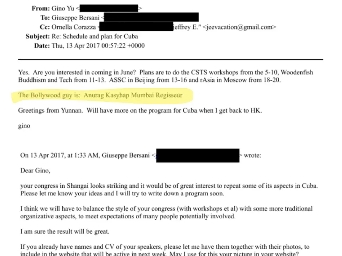 The emails are reportedly about Epstein’s travel to locations like Cuba and Shanghai, and it lists Kashyap as one of several "cool people" expected to attend workshops focused on Buddhism, technology, and medicine.