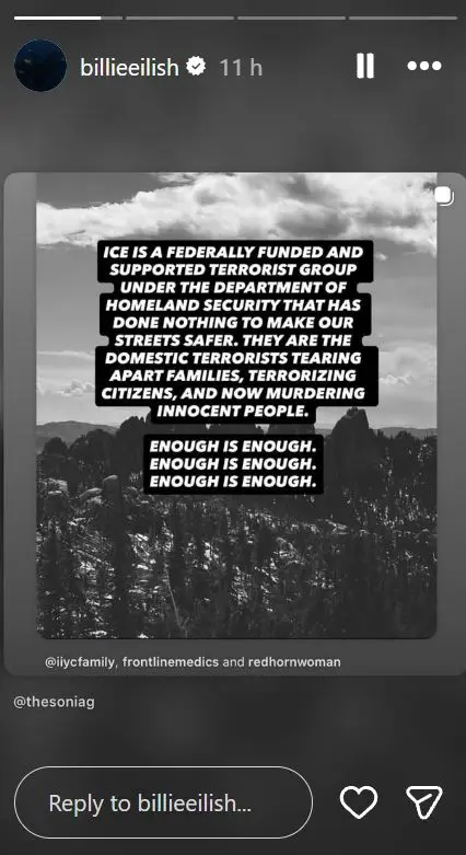 What did Billie Eilish say about the Minneapolis incident in ICE?
