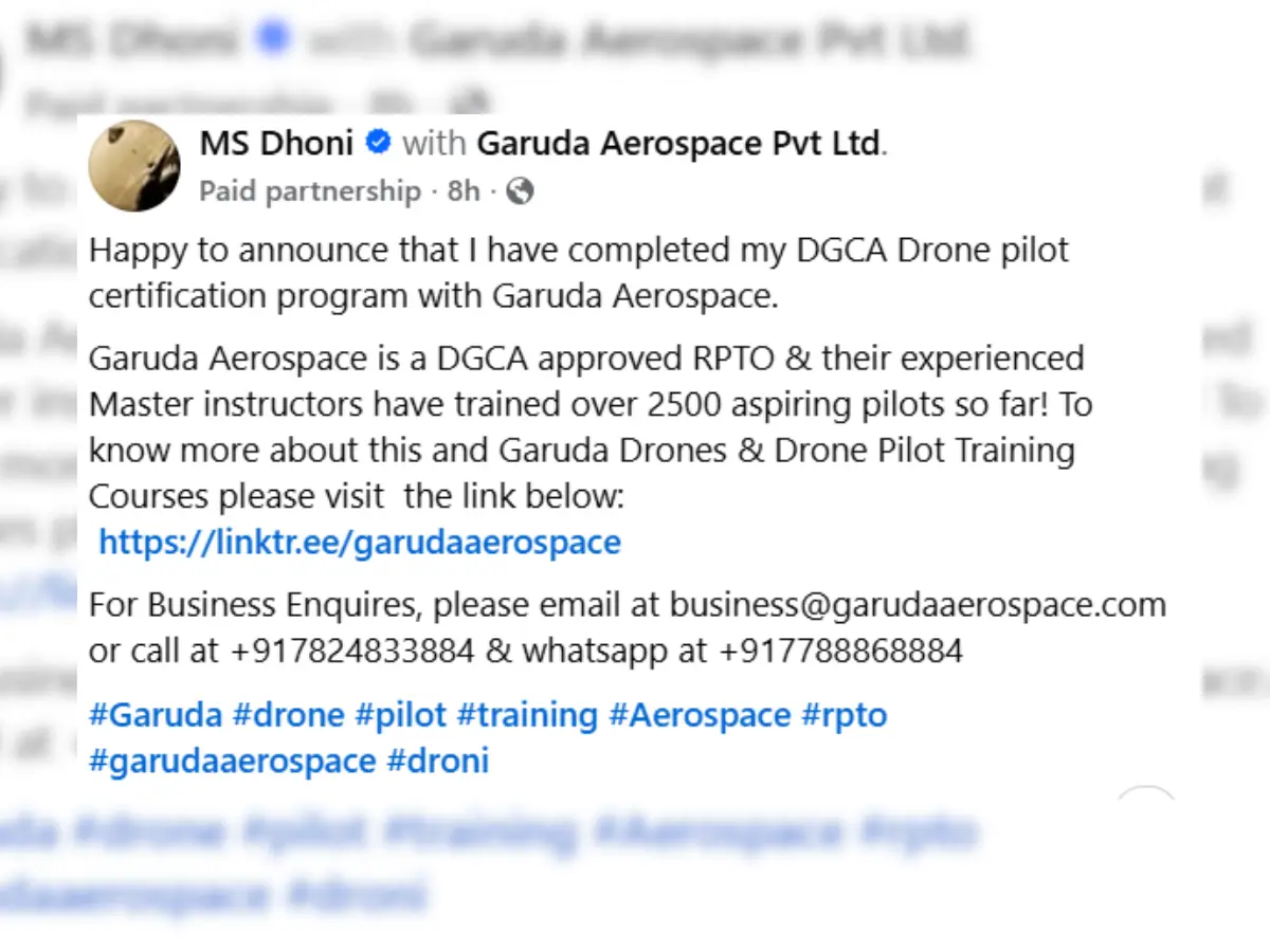 “Happy to announce that I have completed my DGCA Drone pilot certification program with Garuda Aerospace,” Dhoni wrote on Facebook. This milestone adds to his long list of accomplishments, both on and off the field.