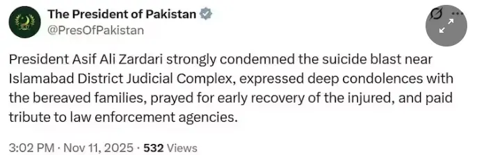 Meanwhile, Pakistan President Asif Ali Zardari condemned the blast and expressed deep condolences to the victims' families. Most of the injured are lawyers and staff working at the court, AFP reported. "As I parked my car and entered the complex, I heard a loud bang on the gate... I saw two dead bodies lying on the gate, and several cars were on fire," lawyer Rustam Malik told AFP. Reuters quoted a police spokesperson and said, "We are probing what kind of blast it was. It is not clear yet. We will be able to provide more details after we get a report from our forensic team."